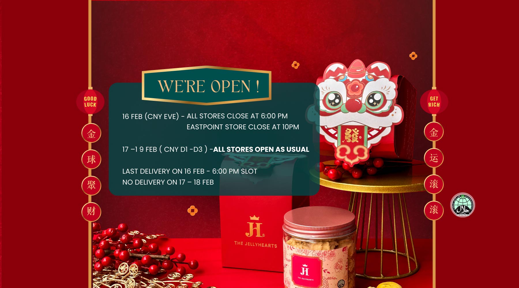 The JellyHearts has multiple outlets conveniently located across Singapore, all proudly halal-certified. This means every cake, cookie, and jelly product we offer is made with ingredients and processes that adhere strictly to halal standards. Whatever your occasion, you and your guests can enjoy our creations with complete peace of mind. Click here to find your nearest store.